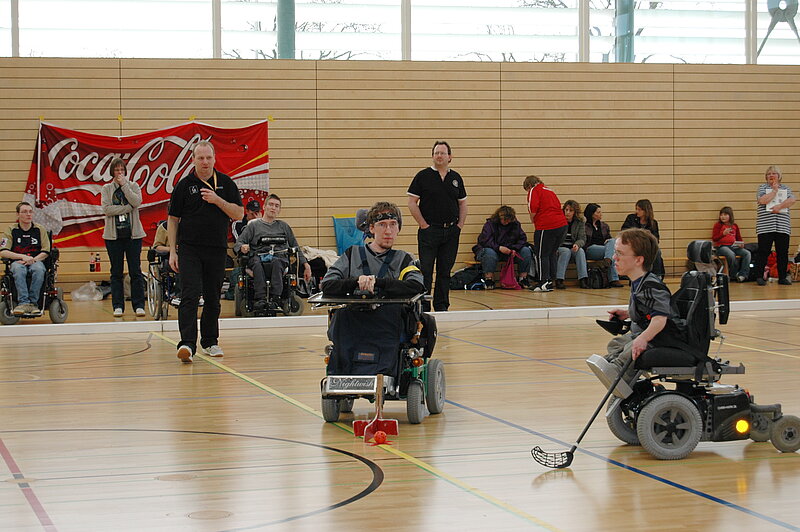 Auch wenn für mich die sozialen Benefits im Vordergrund stehen, hat Powerchair Hockey auch positive Auswirkungen auf die körperliche Gesundheit. Es versteht sich eigentlich von selbst: Man ist in Bewegung, durch die sportliche Aktivität ist man geistig und körperlich angespannt – und immer wieder geht man bis an seine Grenzen, egal ob man nur noch einen Finger bewegen kann oder den gesamten Oberkörper. Durch diese Beanspruchung wird nicht nur die Muskelkraft und Beweglichkeit gestärkt, sondern auch Atmung, Herz und Kreislauf.